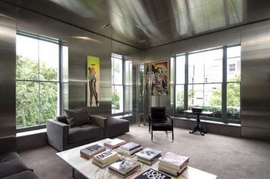 When a luxury designer sets up a home for himself, it is bound to be magnificent. Tom Ford’s house on Gilston Road is chic, minimalistic, and trendy. All rooms are in the monochrome theme of black and white, with black glossy walls, a white staircase, and mahogany woodwork, this house will make you drool.
