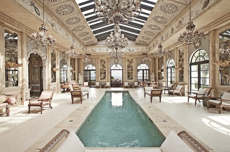 La Villa Contenta is a magnificent property in Malibu, California which leaves a mark on everyone who takes even a quick look at it. Due to its splendid design, this dream residence focuses an entire world between its walls. All the place it’s covered with art, beginning with the museum-quality carved mirror by Thomas Chipendale, which reflects a 2,500-year-old lion’s head sculpture, found at the base of Mount Vesuvius and ending with an indoor pool hall covered with glass ceilings over 20-feet high, with hand-painted gesso mural, billboards of complex seashells and mirrored stars. A remarkable element of the property is the “natatorium”which was inspired by grand European follies, borrowing the Romanesque design along with an extraordinary frieze over the doorway. It stretches over a luxurious area of 12,045 Sq. Ft. and it was built in 2002 following the genius minds of the architects that wanted to create one more wonder of the world located on the Pacific Coast, which is now worth $ 54,000,000.