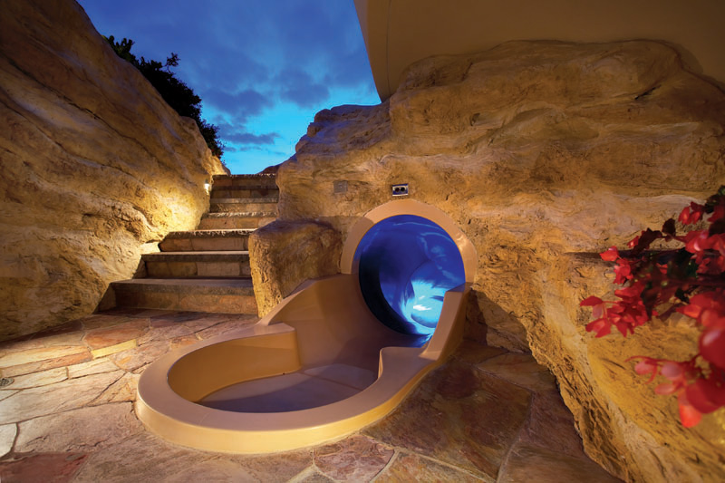 It features eight bedrooms, ten bathrooms and two swimming pools surrounded by 3-storey high grotto rocks. The spectacular is about to come and is composed of 2-lane bowling alley, a private movie theatre, powder rooms and an automotive museum with lightning to display up to 12 collectible cars.