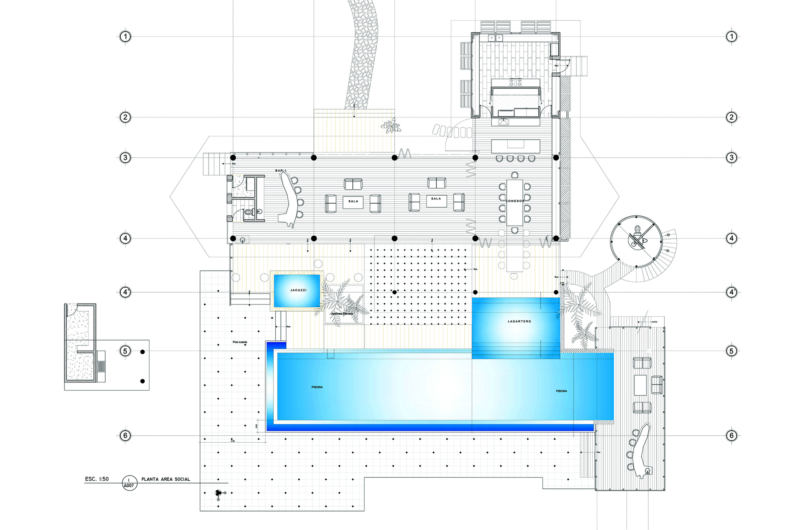 Each one of the 4 houses flaunts direct access to the beach and offers accommodation options between 3 and 5 bedrooms according to the residing family’s needs. The complex impresses with a special social area at its center that features a kitchen, a pool, bars and decks. As far as thermal comfort is concerned, a clever design based on passive cooling and heating solutions reduces power usage use while ensuring convenience.