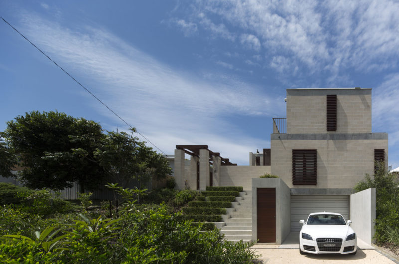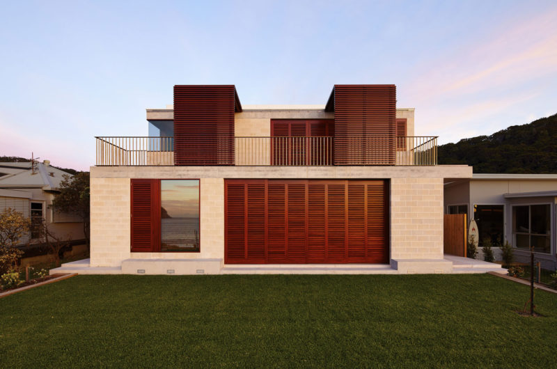 Situated on the shore of Pearl Beach, an area where the bush meets the coast, the Block House is a secluded escape designed to respond to its surroundings. Pearl Beach is formed by two coastal headlands and is defined by eucalypt bush to the north and south and a rainforest to the west. Contextually the house relates to the sandstone cliffs and caves of the surrounding headlands and heavy waves on the beach, which in turn influence the form and materiality of the building.