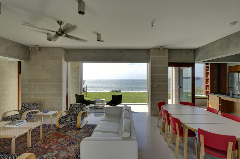 The internal courtyard is formed by two wings, providing an external enclosure protected from harsh onshore winds. The courtyard not only acts a private sanctuary for recreational use, but allows for consistent and controlled ventilation and sun access throughout all spaces in the house. L-shaped single room planning allows movement between interior and exterior spaces to remain unobstructed.