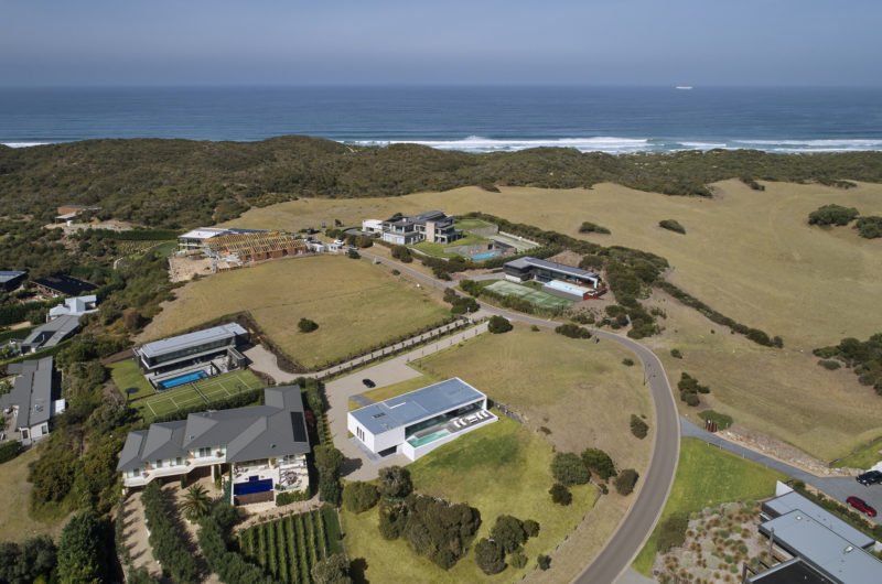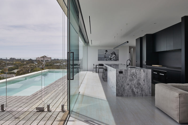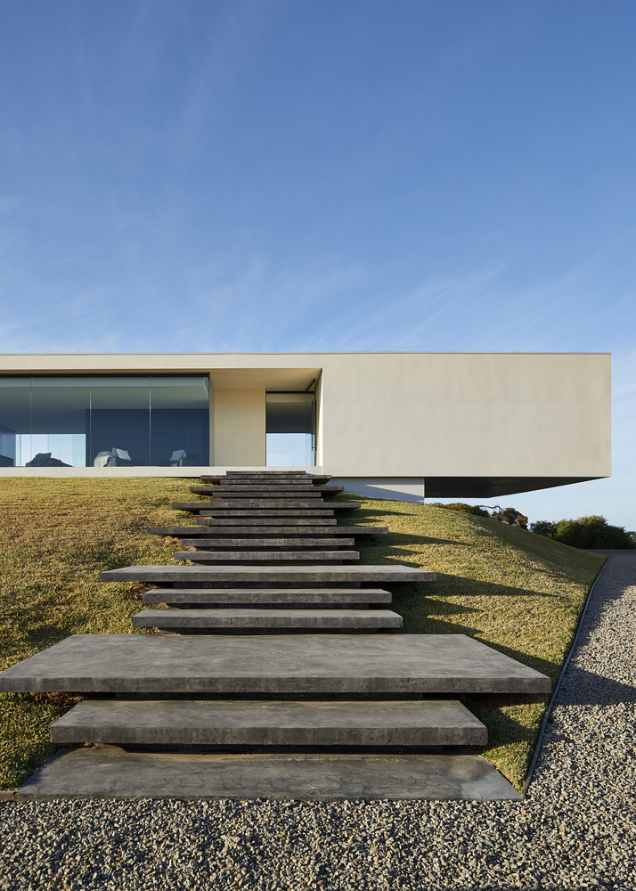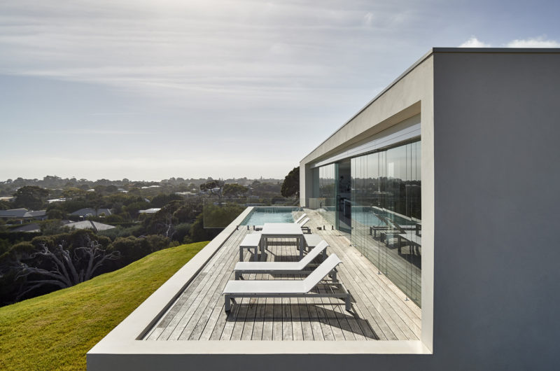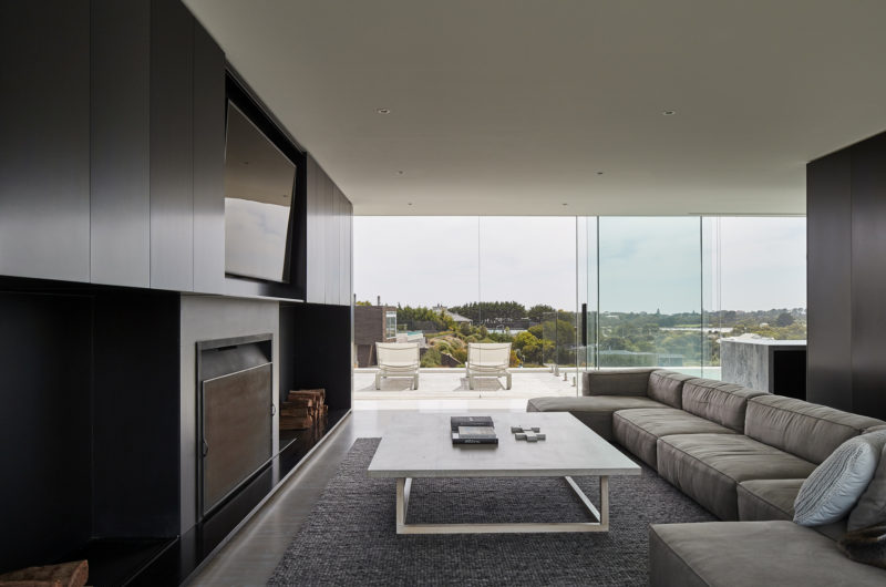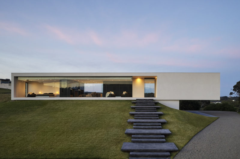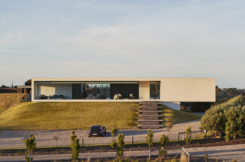 Perched on the crest of Wild Coast house in Portsea, this rectangular modern home instantly draws the attention of everyone passing by. The architecture of the house is mellifluous and considerate. The vastness of the structure and topology of the land gives a floating appearance to the property. A six-meter long cantilevered portion of the house provides visual delicacy whereas the core central module stabilizes the rest of the longitudinal structure.