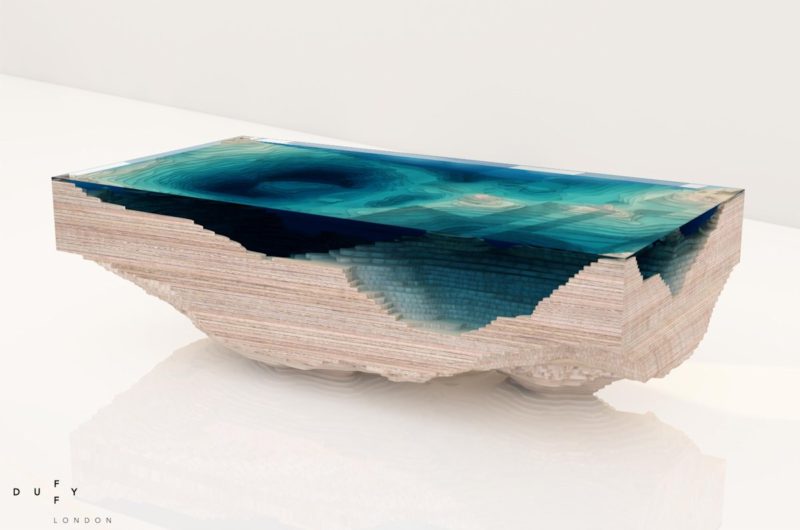 Duffy London made its name by fashioning remarkable designs out of thin air: the uplifting Up Table, that floats on a host of balloons; the Flying Carpet table, that hovers mysteriously above ground; the convivial Swing Table, circled by bobbing suspended chairs; the Shadow Chair, perfectly poised on two legs. This autumn, Duffy casts an eye downwards – looking to the depths of the ocean to dream up a dramatic new coffee table, that introduces the majesty of the big blue to the interior… As well as servicing you with somewhere impressive to put your cup of tea.