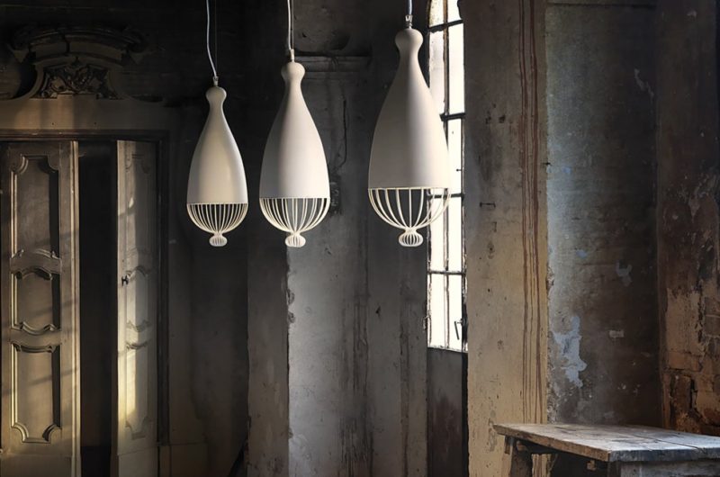 Le Trulle is a series of suspension lamps created by Edmondo Testaguzza, who used natural ceramic and metallic thread in order to create them for manufacturer Karman. These contemporary light fixtures transform any room into a space with personality and a unique look. Their shape and materials, from which they are made, create a game of shadows and lights, which give the room depth. Such items become the centerpiece of the room, thanks to their special design.