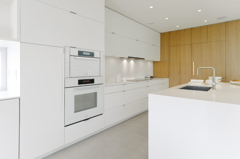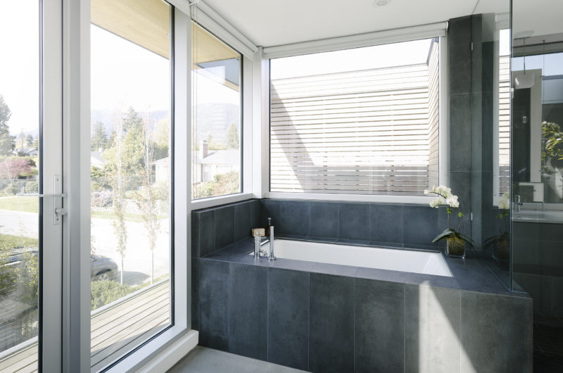 “There was an opportunity to create separate kitchen-dining and living areas,” says Parish. That “opportunity”was a zoning bylaw that restricted the square footage of living space on the lot where a former house had stood. Rather than building a great room to unite the dining and living functions, he created a separation using a garden.The result is an eye-catching slice of nature. “It was born out of the realities of zoning but it gave us the opportunity to create some interesting use of space,” says Parish. The back of the house flanks the bamboo garden on three sides. To accommodate the plants as they grow, Parish carved space out of the upper storey. A glassed-in bridge divides the master bedroom’s walk-in closet and the ensuite bathroom. Here, the tops of the fast-growing bamboo plants are visible through the windows. In addition to bringing the garden in, Parish gave the family, which had been accustomed to a cramped rancher, a spacious modern home that accommodates their active lives. Homeowners Alix and Anthony Findlay, whose former house on this site was demolished to make way for the new construction, moved in last year. For them, the garden was an original feature that they appreciated in the initial designs.“It’s so cool,” says Alix.“At night we can dim the lights and the bamboo is all lit up.”