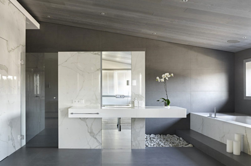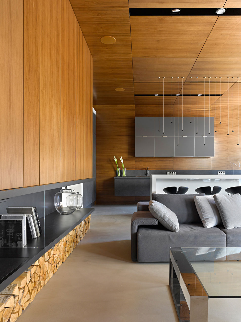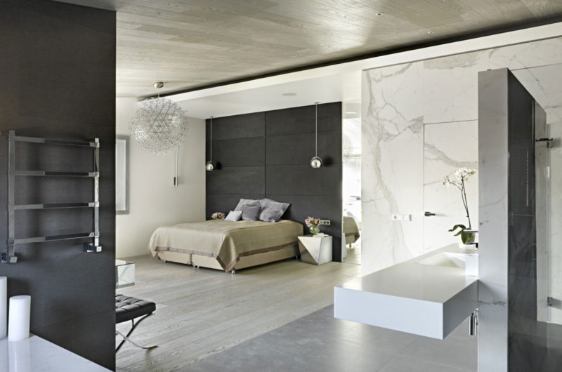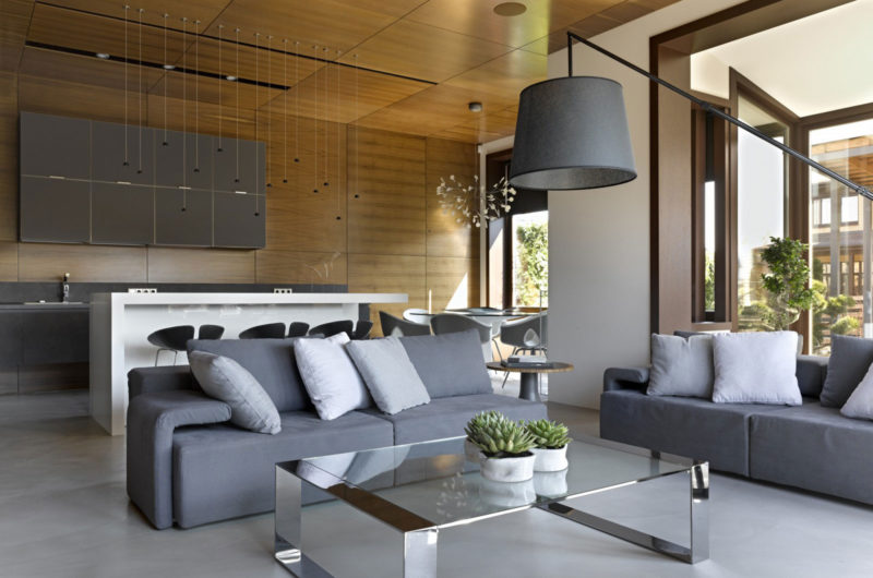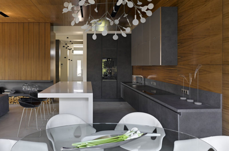 Just a quick look at this amazing, modern home is enough to realize that it was designed by an expert. Alexandra Fedorova did an extraordinary job in envisioning this stunning suburbs residence, which looks like it could definitely support a lavish and comfortable lifestyle for its lucky owners. The abode was furnished tastefully and features a color palette based on natural tones of brown and from the wood wall paneling and neutral tones of gray and white from the sofas, kitchen counters, cabinetry and tables.