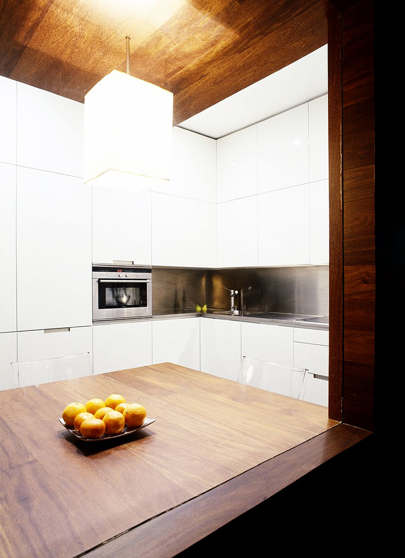 The following interior design by Díaz y Díaz Arcquitectos is a special project located in La Coruña, Galicia, Spain. It is special because by removing the walls, this flat was provided much more space and natural light, instead of the walls, an ingenious architectural piece taking their place.