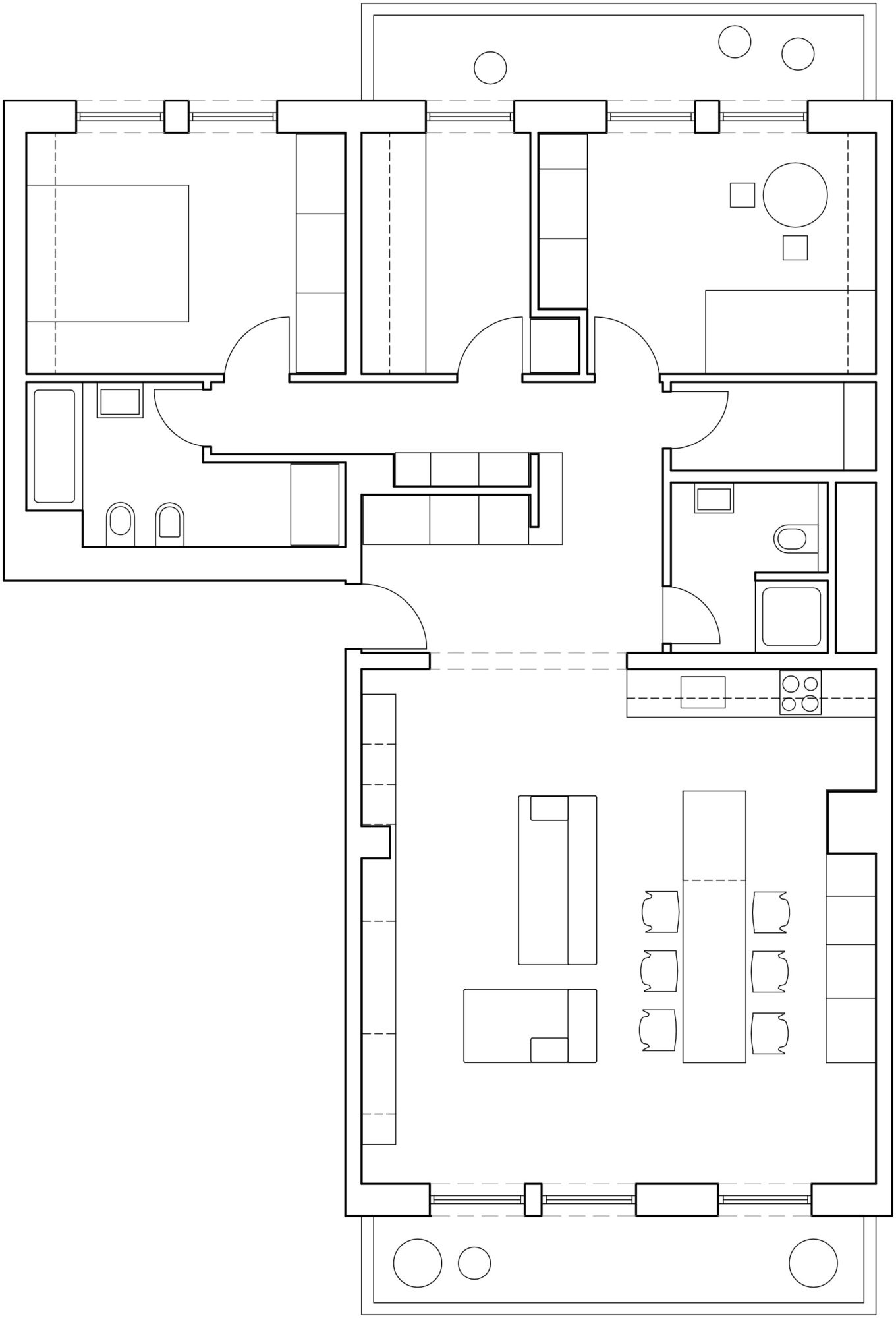 Because the apartment was practically ruined when the client approached the architects, a renovation was needed. Therefore, the floor plan remained the same, except some bathroom enhancements, windows and door replacements, new flooring and also electrical installations.