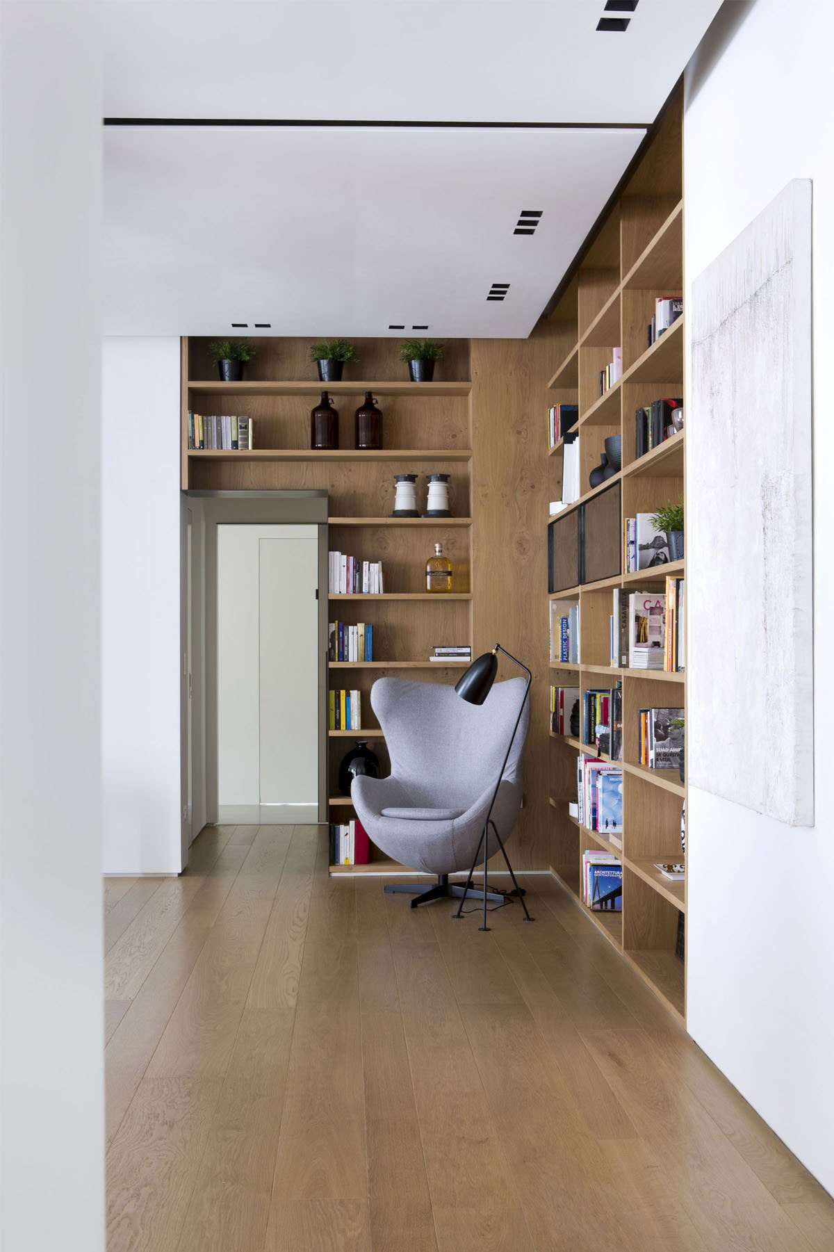The owners are also able to enjoy quiet moments of relaxation and contemplation at a small reading area, which boasts a comfortable chair, a lamp and ample shelving for books.