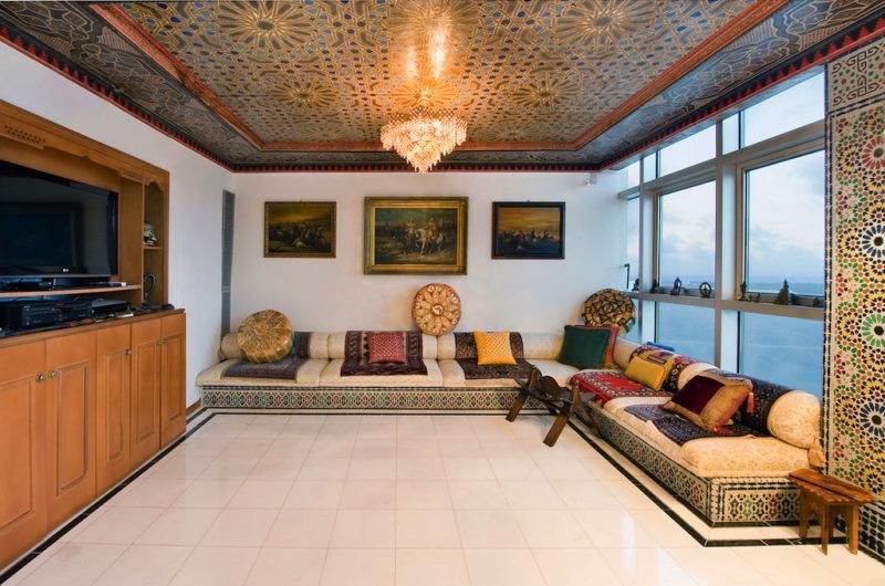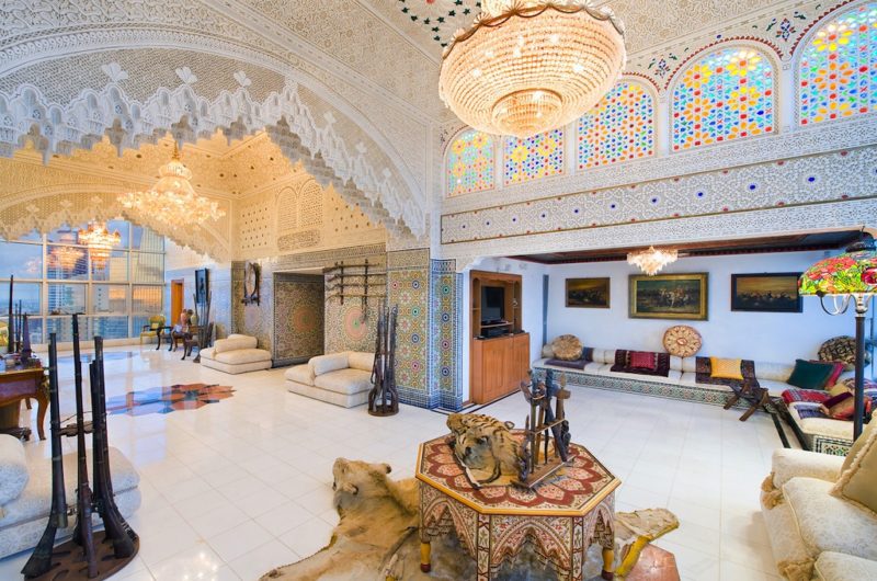 The Taj Miami home is placed on top of Palace Condominium in Miami and is worth $4,199,000. It is a three-level house with exterior walls made of glass, owned by Saoud Al-Shaalan, a Saudi Shiek. This explains the Taj Majal-inspired interior design and the fact that the residence resembles an Arabian palace. The entire decorating work was made by twenty Moroccan artisans and craftsmen.