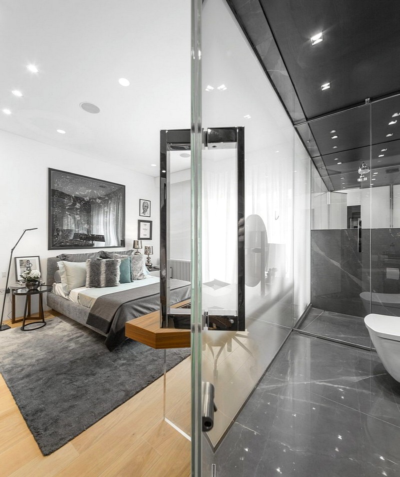 This 3-floored apartment in London’s Belgravia area is a piece of art in itself. Every element is thoroughly researched and then introduced to space. During the renovation, existing walls were removed to increase the visual appeal of the house. In contrast to the vigorous walls, dainty glass partitions introduce a sense of transparency.
