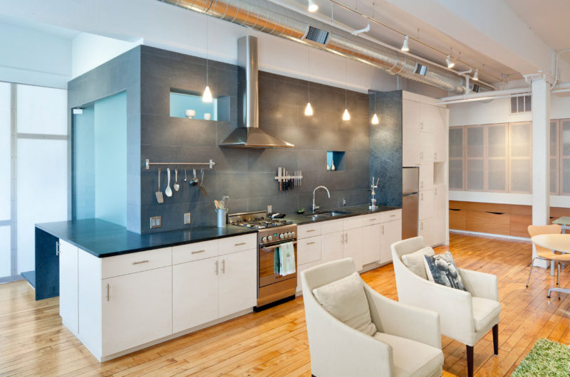 Paschke Danskin Double Loft is located in the district of Providence, Rhode Island, USA and was renovated by 3six0 Architecture in 2009 who managed to put together accommodations for two people with different professions.