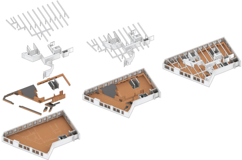 The organization of the two lofts was made by mingling cloud and stack into walls and storage areas.