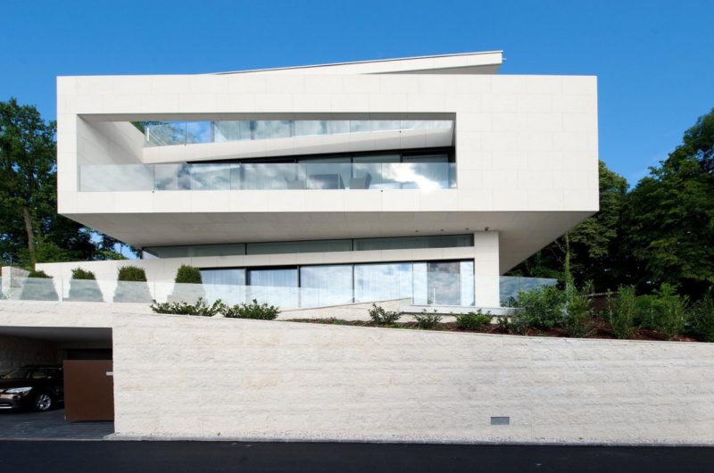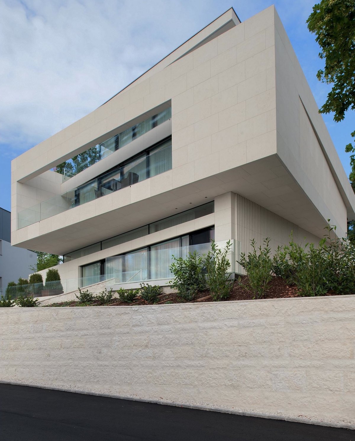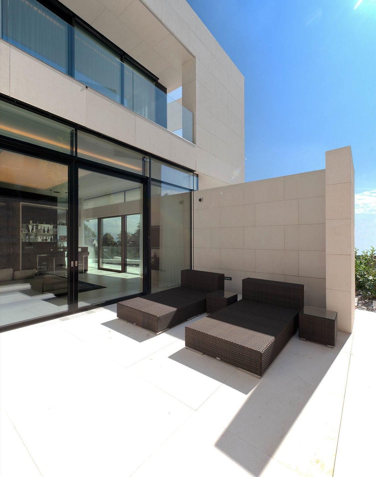 The main material used for building the villa was light limestone, according to the owner’s demands. In contrast, it was achieved an area of stone cladding by accessorizing some of the limestone panels with a strong fluted appearance.