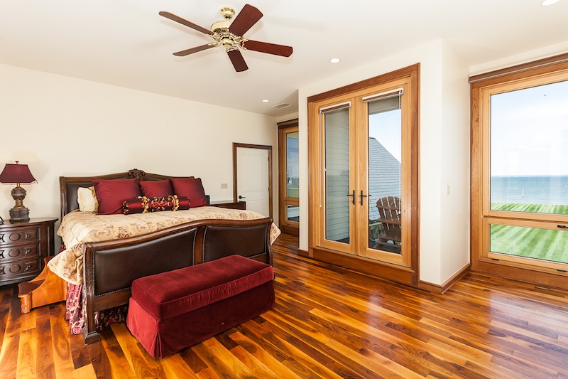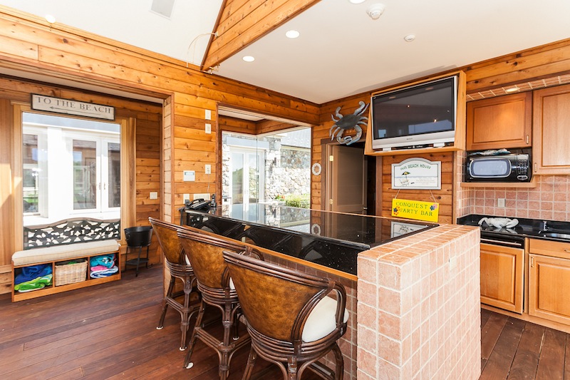 Among the luxurious amenities, there is also a 2-level home theatre, a private club with stage and bar, guest quarters, a pool house and a sandy beach with a pier. The price for this beauty went down recently at $8.200.000!