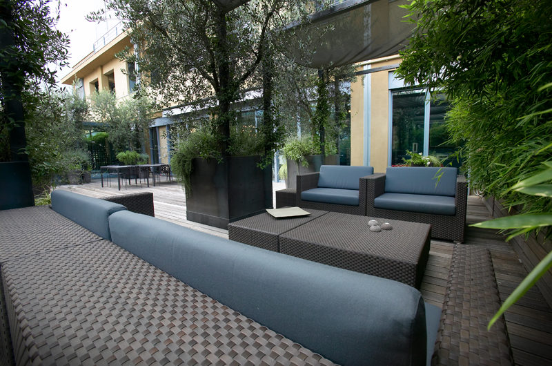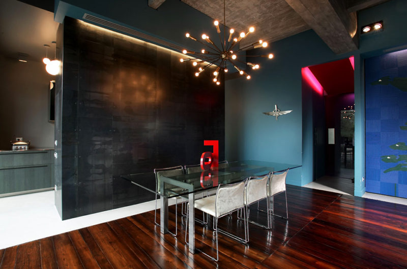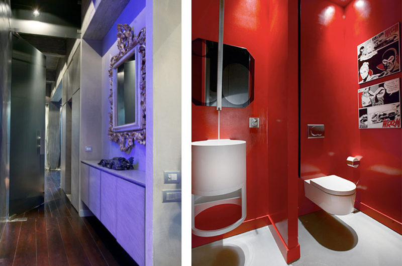 This 2,100-square-foot loft in Turin, Italy, was designed by MG2 Architecture. It is an ideal dwelling for a rich bachelor, with access to a vast outdoor terrace, which is an excellent spot for big parties with friends. The interiors spell “young and single”, with powerful colors and well-selected furniture pieces. See for yourself in the photo gallery below.