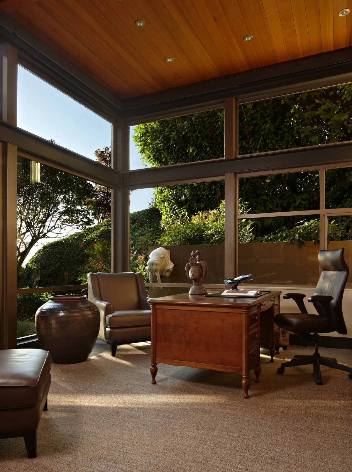 An elevator ensures accessibility to the garage, mother-in-law apartment and to the main living floors. The upper apartment located on the green roof provides beautiful views and landscape.