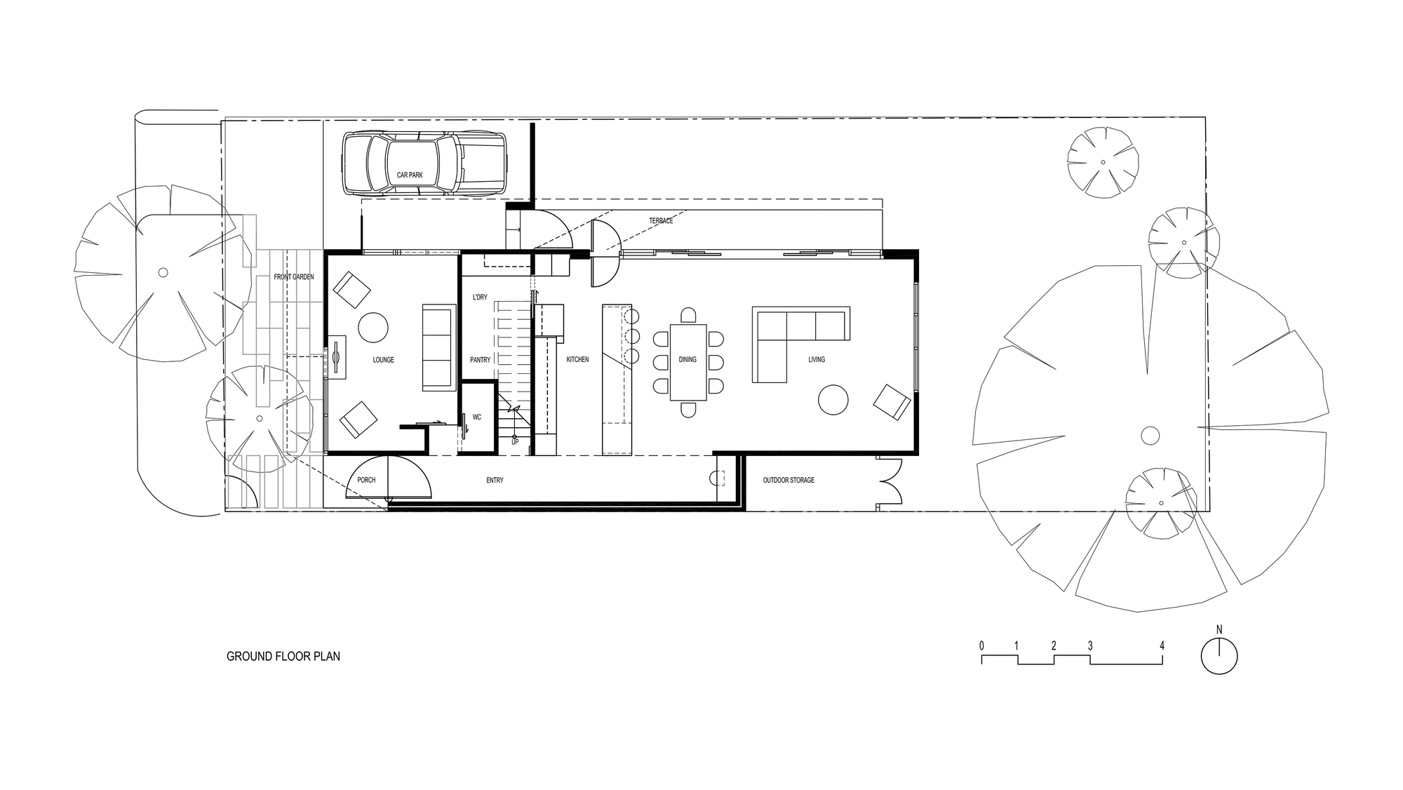 The budget was very tight so the building areas were kept as compact as possible, and simple cost effective materials used throughout. A 2 storey structure was designed to minimise the building footprint and maximise the amount of garden space.