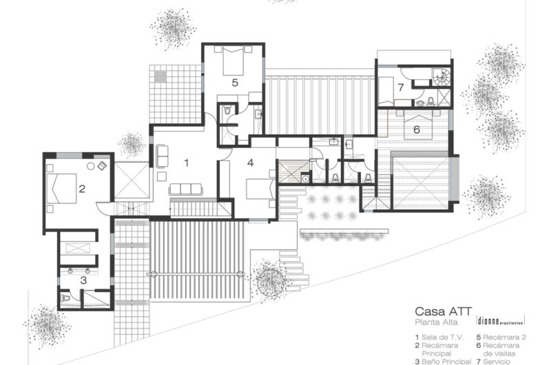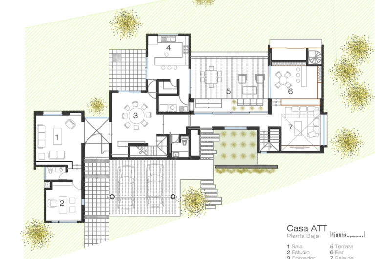 Finished in 2013 by Dionne Arquitectos, Casa ATT is a modern, welcoming and comfortable residence that is located in Puebla, Mexico. At a glance, this home impresses with a contemporary design that involves a white façade complemented by wooden elements. At the rear of the house, a terrace features comfortable seating arrangements and tables that can be used for socialization and relaxation purposes by the lucky owners and their guests.