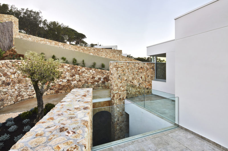 The home was built parallel with the access road, and it is actually sheltered by it. As such, the entrance can be found on the upper level and is directly connected to the aforementioned roadway, while the level below features a series of small courtyards, gardens and the public living arrangements. The 2 levels distinguish themselves with unique designs: one of them boasts opacity and compartmentation while the other features transparency and utmost openness.