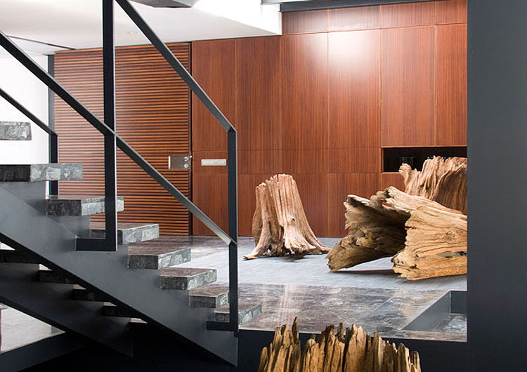 The building’s main focus points are the double height foyer, restored as a sculptural area, and the terrace, which is the place where the family members spend time together and relax. The architects managed to create a modern and unique residence combining old and new materials and techniques.
