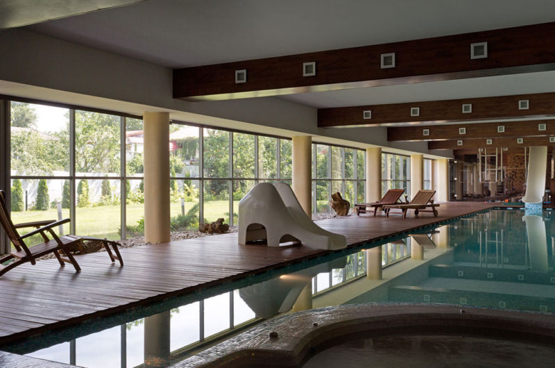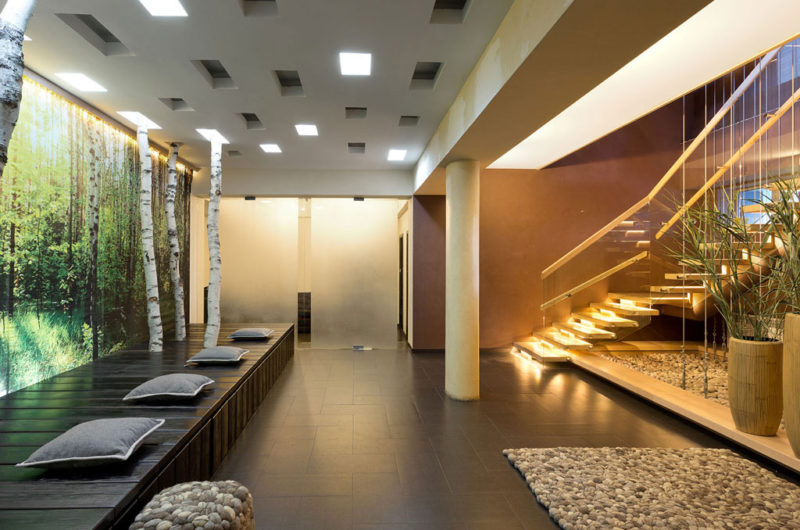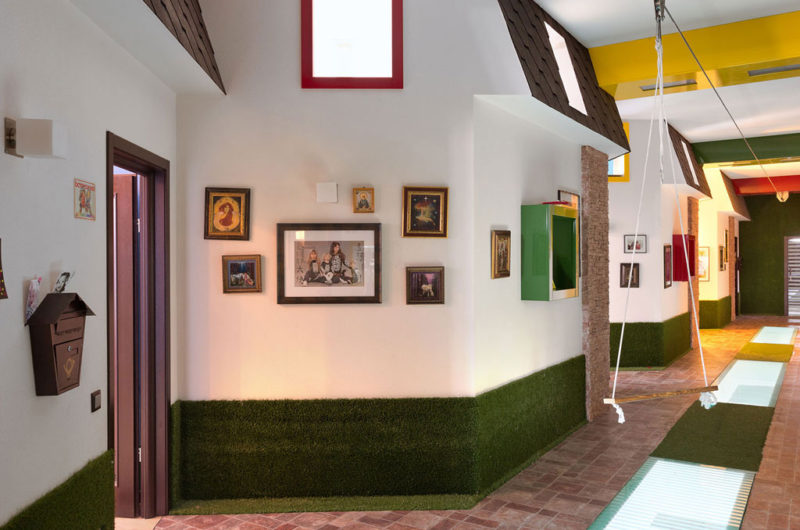 The architect created a nice and cozy environment with neutral palettes and rooms decorated by themes. For instance, one is a forest playground, another one is a zip-lined hallway, and so on.