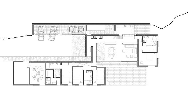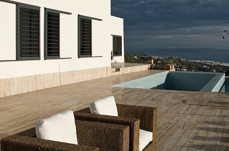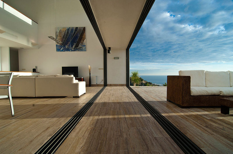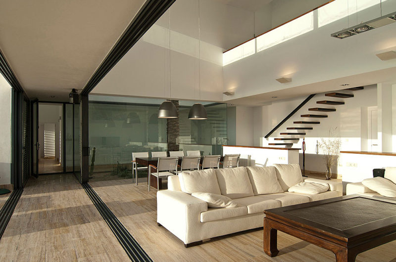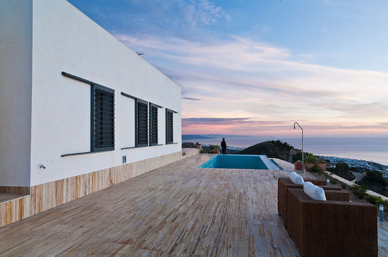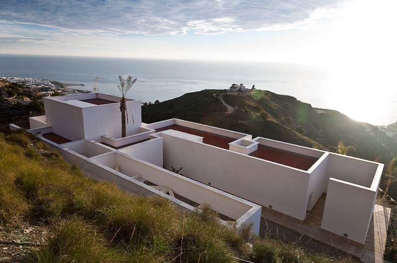 With a simple, minimalist architecture, the AA House can be found in Mojácar, Spain, overlooking the beautiful Mediterranean Sea. It is situated on a steel slope and features three longitudinal strips, making up the three levels of the house.