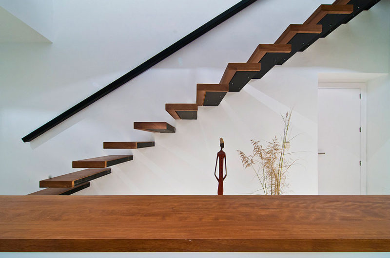 In all, there are 3,068 square feet of space: a kitchen and garage on the ground level; the main space, including a double height living area, on the first floor; guest and children rooms, arts workshop, and small sauna on the top floor. The residence was completed in 2007 by MVN Architects.