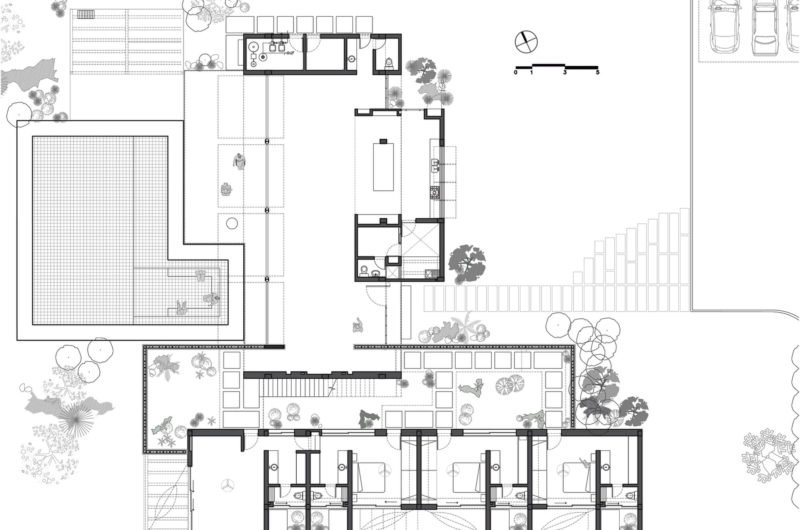 Due to the large shutters,on the poolside façade,that can be opened, the indoor space is transformed into a private and tranquil experience.
