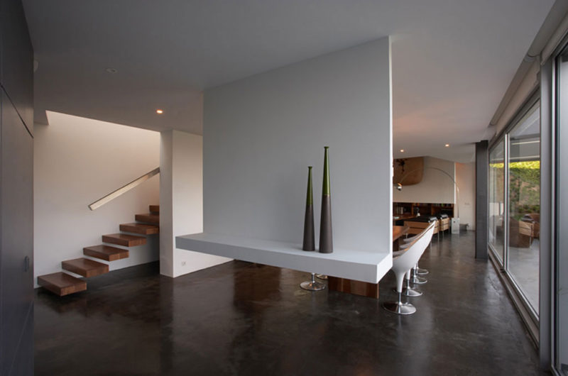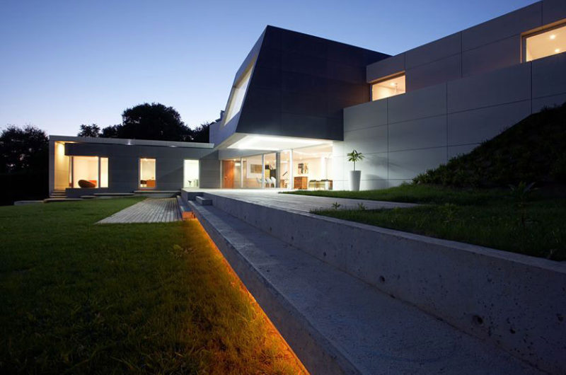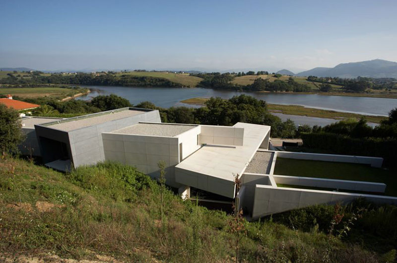 House in Santander is a beautiful contemporary home located in Santander, Spain. Designed by A-cero, it was built using a lot of concrete, wood and glass. It stands on a slope and it affords wonderful views towards River Miera. The different volumes of the building are placed at odd angles in a very A-cero way. Connoisseurs can only love it.