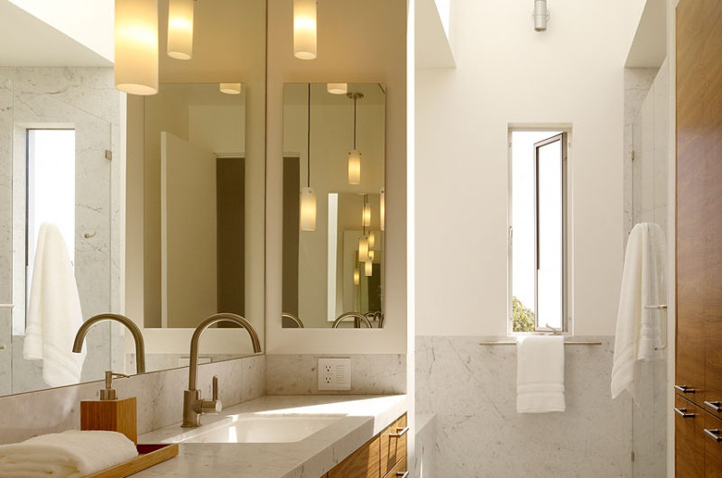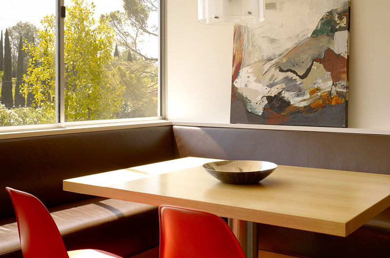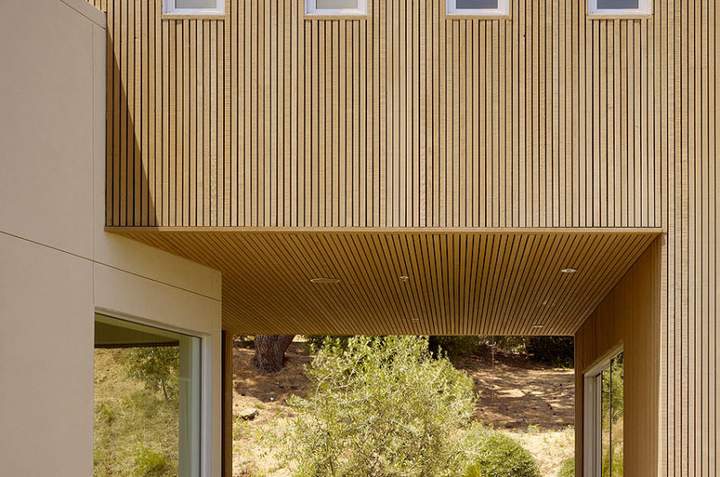 Large windows and sliding glazed doors allow an unobstructed communication with the lovely outdoor spaces. The property features olive, apricot, citrus and California pepper trees that enhance the privacy of the residence. On the roof there are photovoltaic panels that help generate half of the residence’s electricity. Additional panels are used to heat all of the home’s water. Sunshades decrease heat gain during summer, but there is also a high efficiency electric heat pump that takes care of the dwelling’s cooling and heating needs. Insulation plays a major role in keeping this house nature friendly.