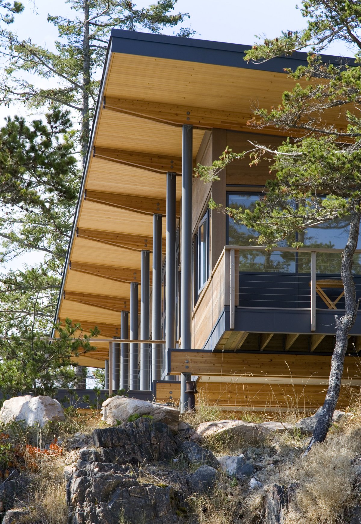This beautifully designed, modern residence represents the work of a team of skilled architects from Balance Associates, and it can be found on an island called Cortes in British Columbia, Canada. The home was perched on the edge of a granite cliff and features amazing views of the Straight of Georgia on its southern side.