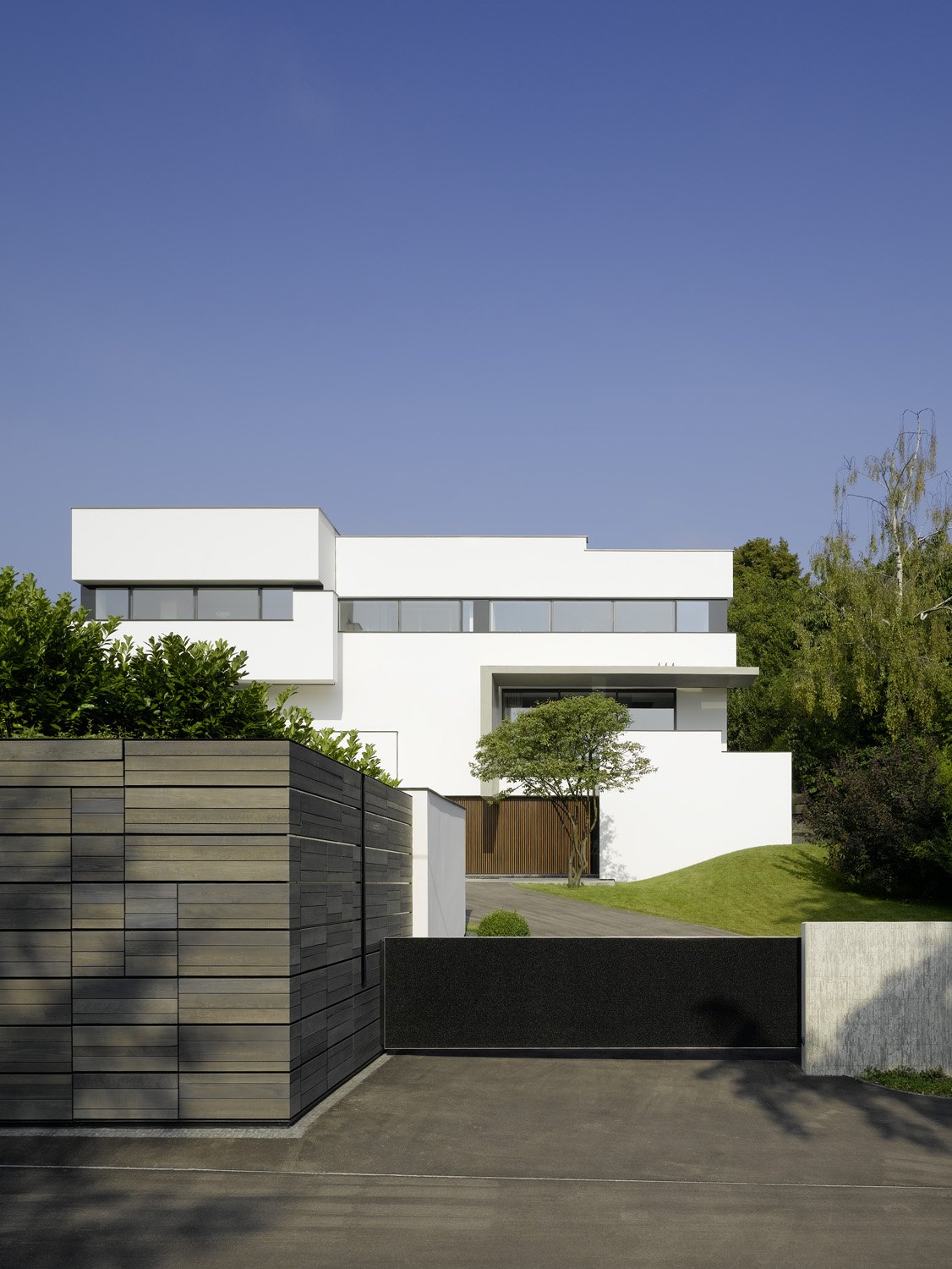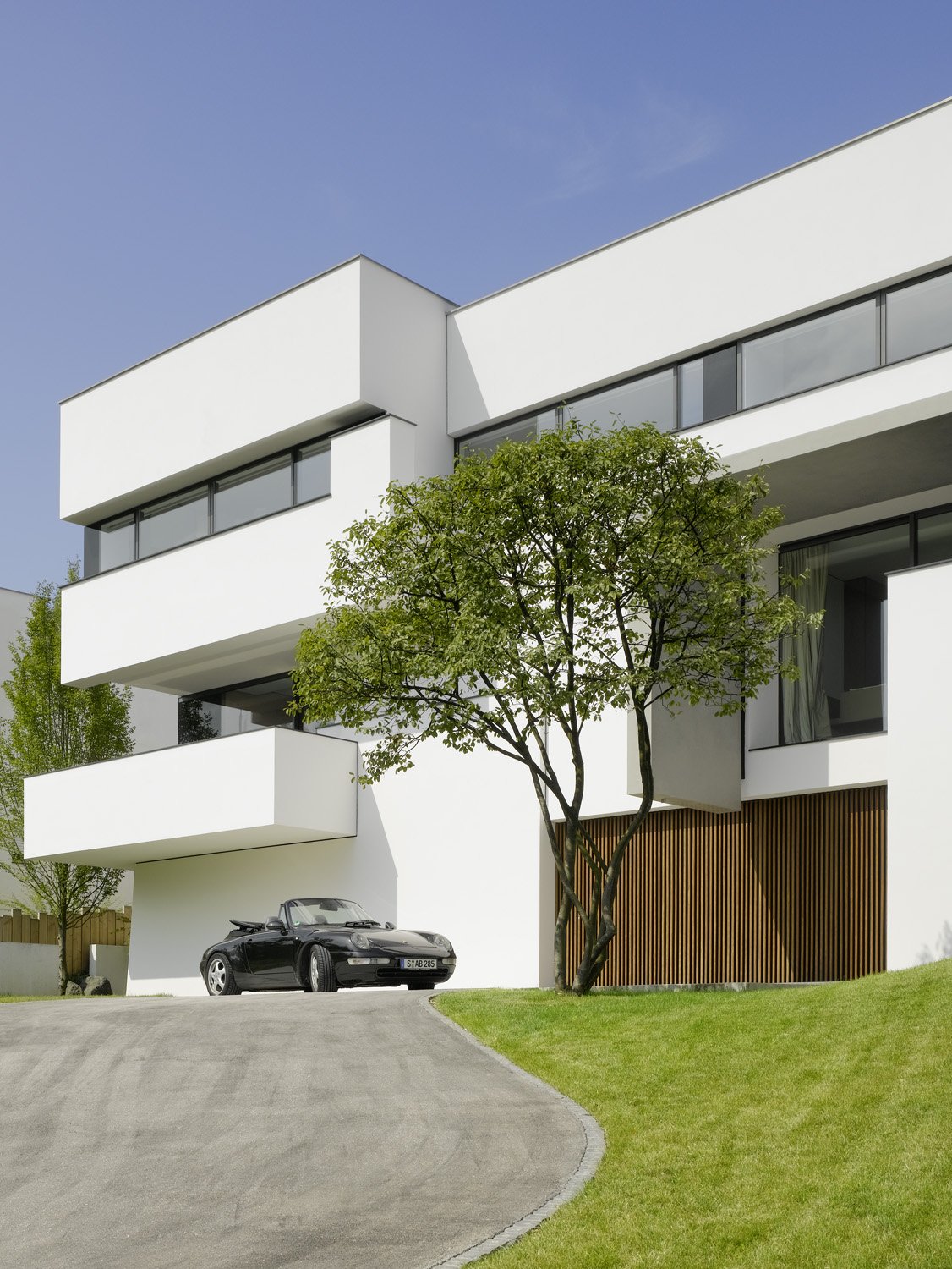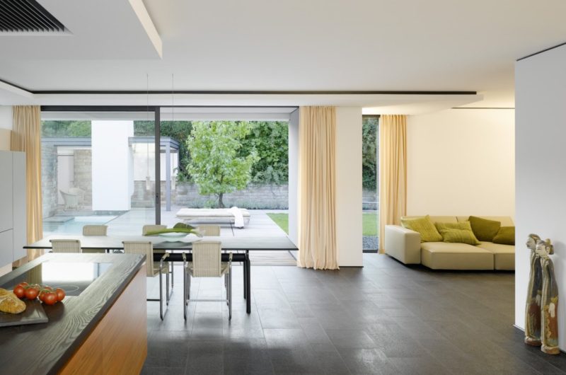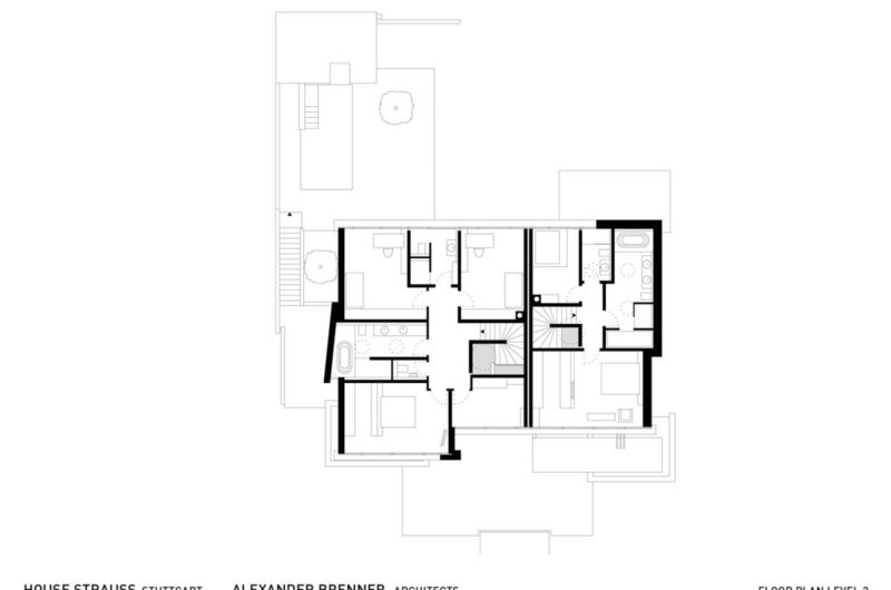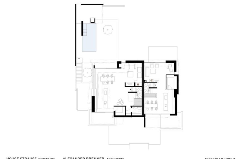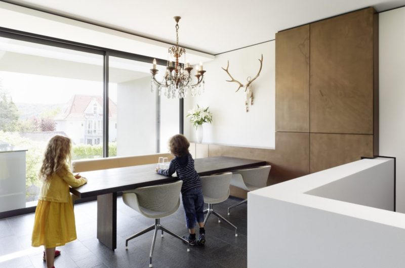 Built for a large family in Stuttgart, the Strauss Residence is a wonderful contemporary home in Germany that was designed up to the smallest detail by Alexander Brenner Architekten. In the front of the house are positioned the garages as a protection for the building.A part of the residence’s basement is used as an office and just above lives a family with two children. On the western side of the property is located a beautiful garden that gathers a gorgeous pool and a play area for kids.