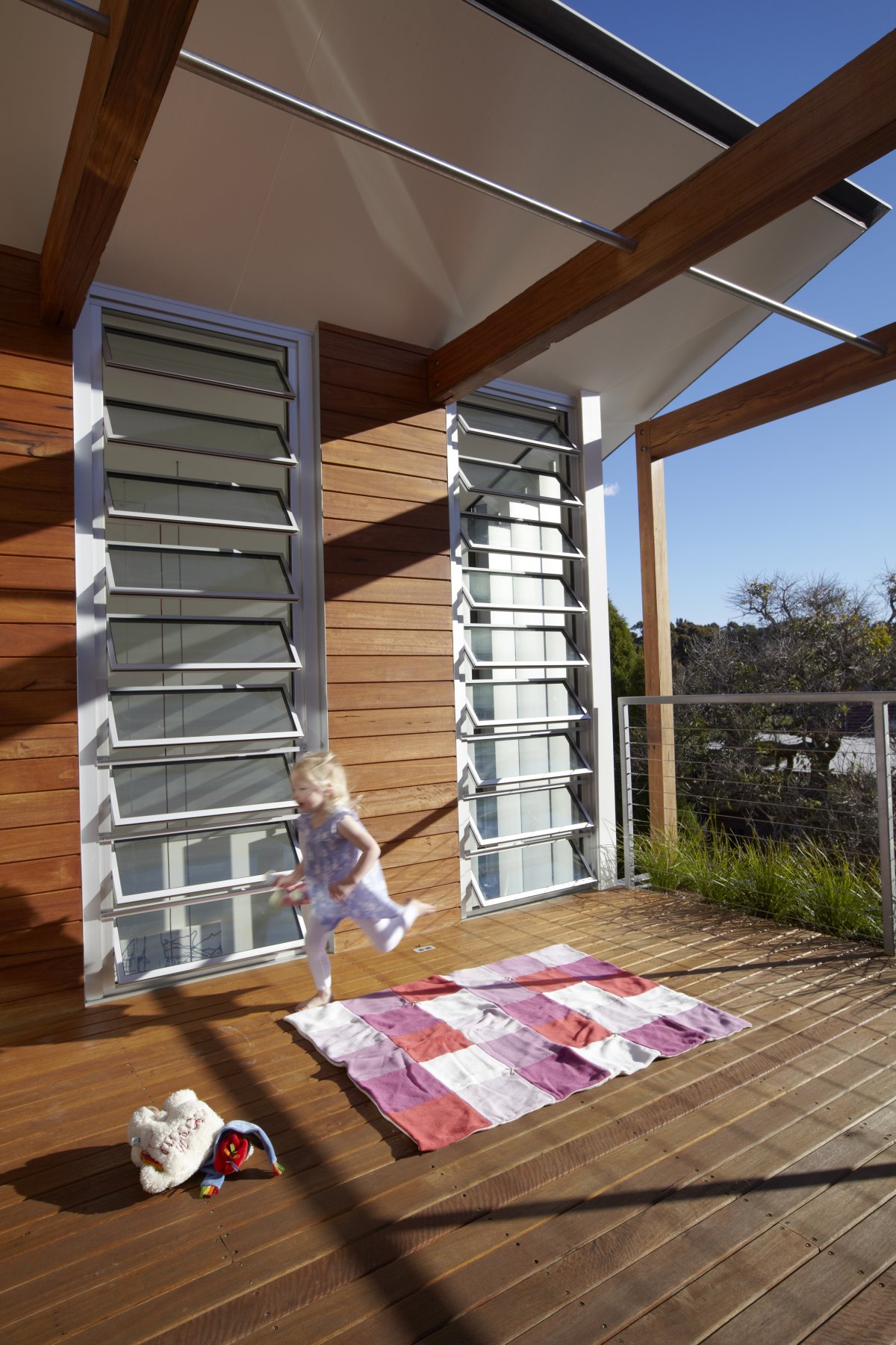According to the design principles, the material consumption was reduced through the use of some elements such as external shading, operable roof, thermal mass, exposed concrete floor, natural materials and shade planting.