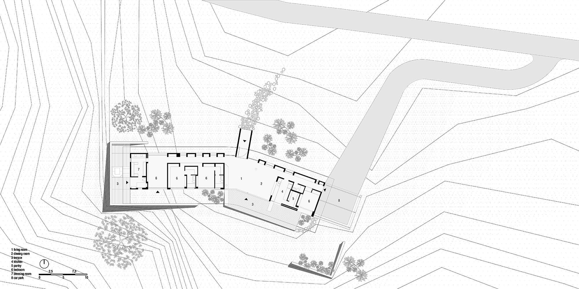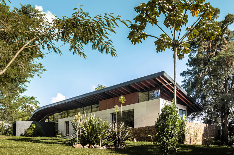 The El Carajo House was completed in 2013 by Obranegra Arquitectos, and it can be found in El Retiro, Antioquia, Colombia. It offers 3,444 square feet of living space and was built within an ecological park in La Fe dam. Therefore, it is surrounded by numerous forms of natural vegetation and boasts exquisite panoramas of the beautiful natural environment.