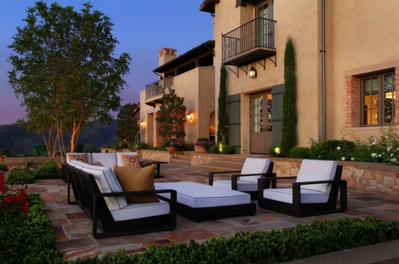 Opt for the furniture that matches the style of your home and brings you relaxation. If you have a wooden terrace, then pick the light wood fixtures painted in warm colors. You might also consider some pillows for your chairs.