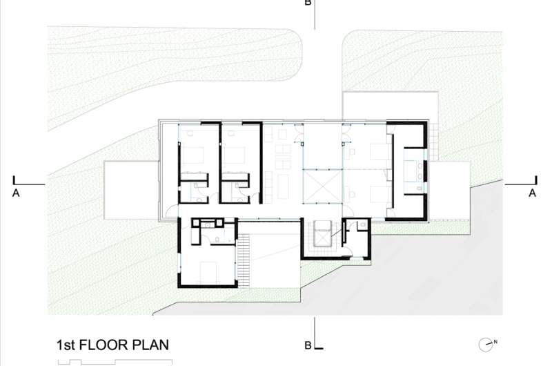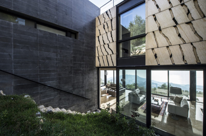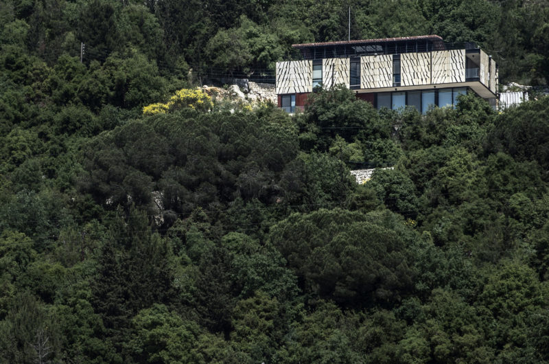 The prismatic stone volume with its red roof is a reinterpretation of the classic Lebanese village house concept, which means that it benefits from staggering views of the surroundings while receiving plenty of natural light through a series of openings found in its structure. Last but not least, the roof of the residence flaunts a steel pergola that has terra-cotta louvers and houses a painting studio as well as a terrace.