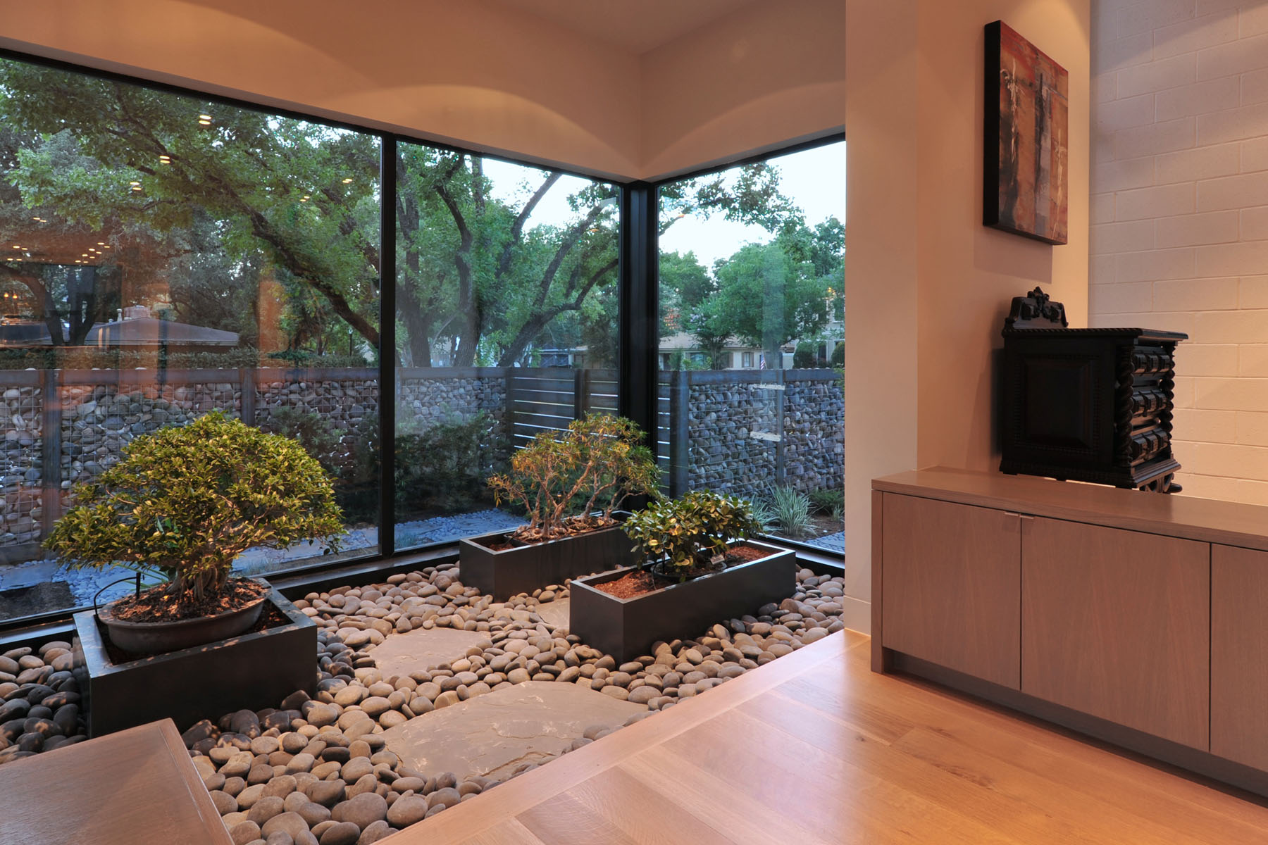 Taking advantage of a corner lot, the Underwood House marries interior and exterior spaces that feature fire, water and rock garden landscapes.