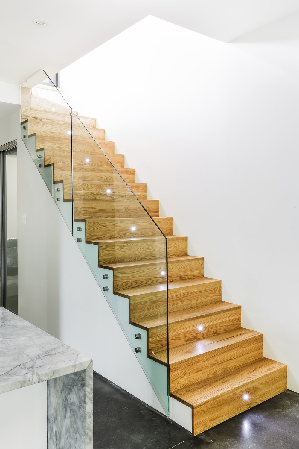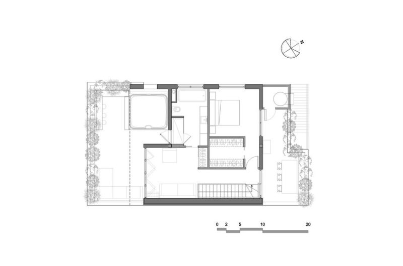 For this very special project, MU Architecture used raw, natural materials such as wood for the staircase, concrete for the floors and cedar planks for the upmost volume of the house. As we mentioned before, this stunning home provides luxurious living accommodations for its fortunate owners. Apart from the comfortable master bedroom and the fully equipped kitchen, the residents benefit from a dinette area and from special barbecuing arrangements, while a lounge opening up to a main terrace ensures ample relaxation opportunities. The main bathroom is also quite impressive, featuring a lovely shower as well as a lavish Jacuzzi and splendid glass doors.