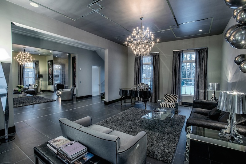 The impressive lighting arrangements complemented by the high quality Italian porcelain tile flooring and handcrafted hardware have the potential to impress at a glance. However, it’s also worth mentioning that this abode features tall 12-foot ceilings at its main floor as well as an open layout, French doors and a large terrace. The reception hall is adorned with Italian Hope chandeliers, while the spacious kitchen boasts an imported Caesarstone center isle as well as a large breakfast area.