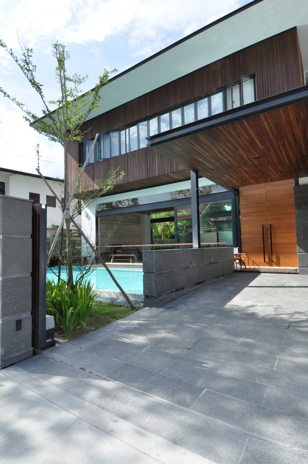 This beautiful 2-storey home can be found in one of the most coveted areas in Singapore, and it was sketched out by skilled architects from a company called “a_collective“. The home was built on an L-shaped plan that ensures a private garden area in the back, while the main living areas are placed towards the front featuring great views of the nearby main road.