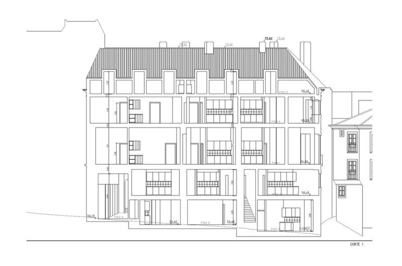 At the Interior architecture level we emphasized its complexity and structural heterogeneity, choosing the main resistant elements of the building as guides for the design of the space, articulating circulations and interior compartments, as well as its whole relationship with the street and patio.