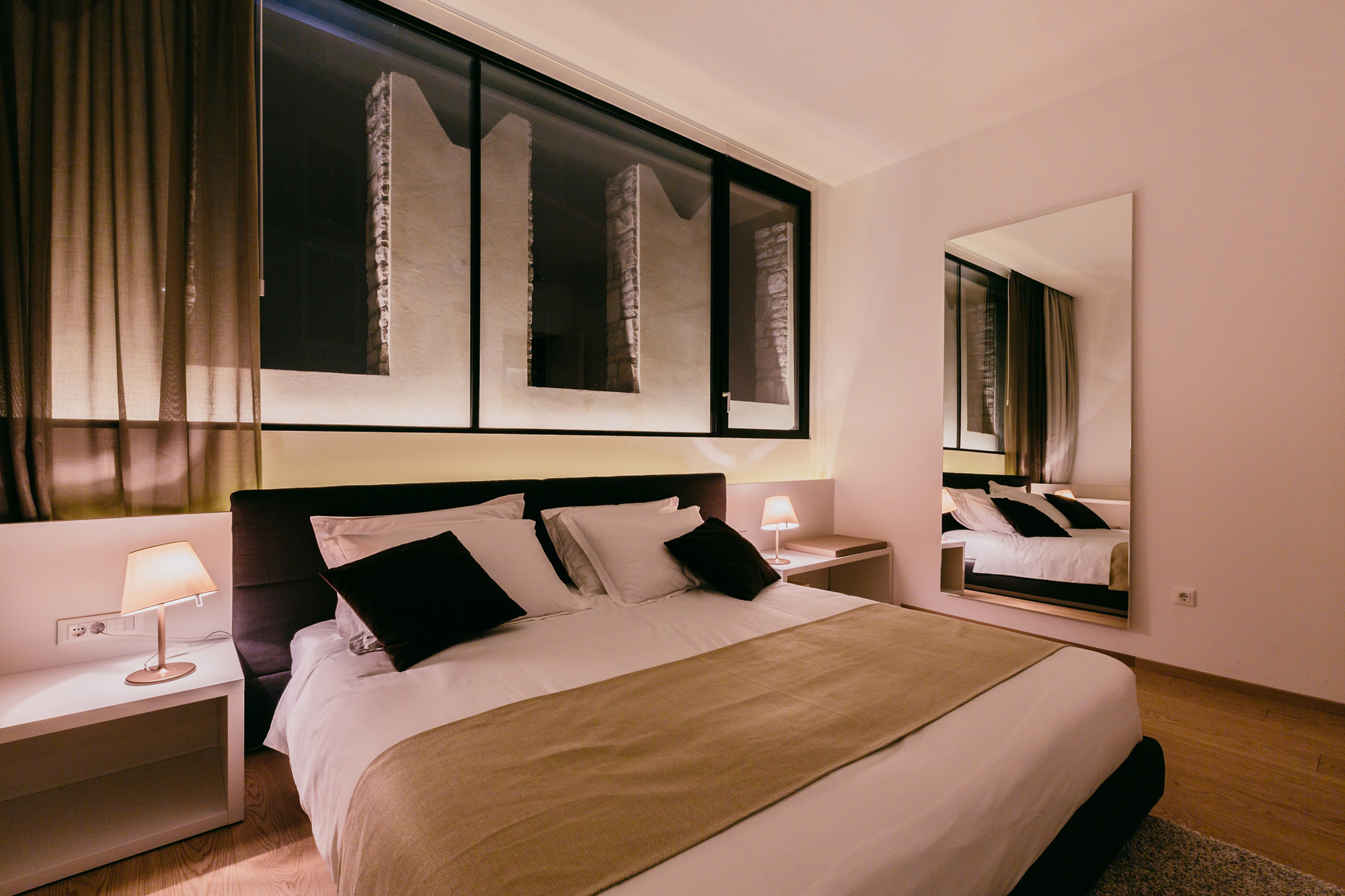The architects goal was to create a series of visual experiences generated by the sea and medieval stone walls so all major facilities are oriented towards them. The stone walls have served as the perfect backdrop where day and night light plays.