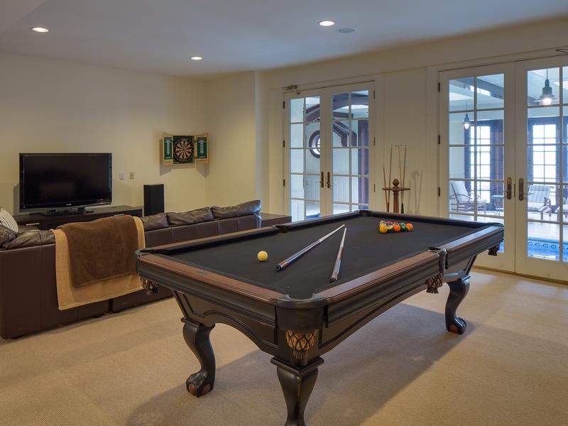 Accommodations comprise six full bathrooms, three half ones and six lavish bedrooms. Even though it was built in 1994, this house impresses with a timeless classic look that is impossible to ignore. Highlights include a sauna, a fitness center, a special recreation room with a fireplace and an indoor swimming pool that is illuminated by skylights.