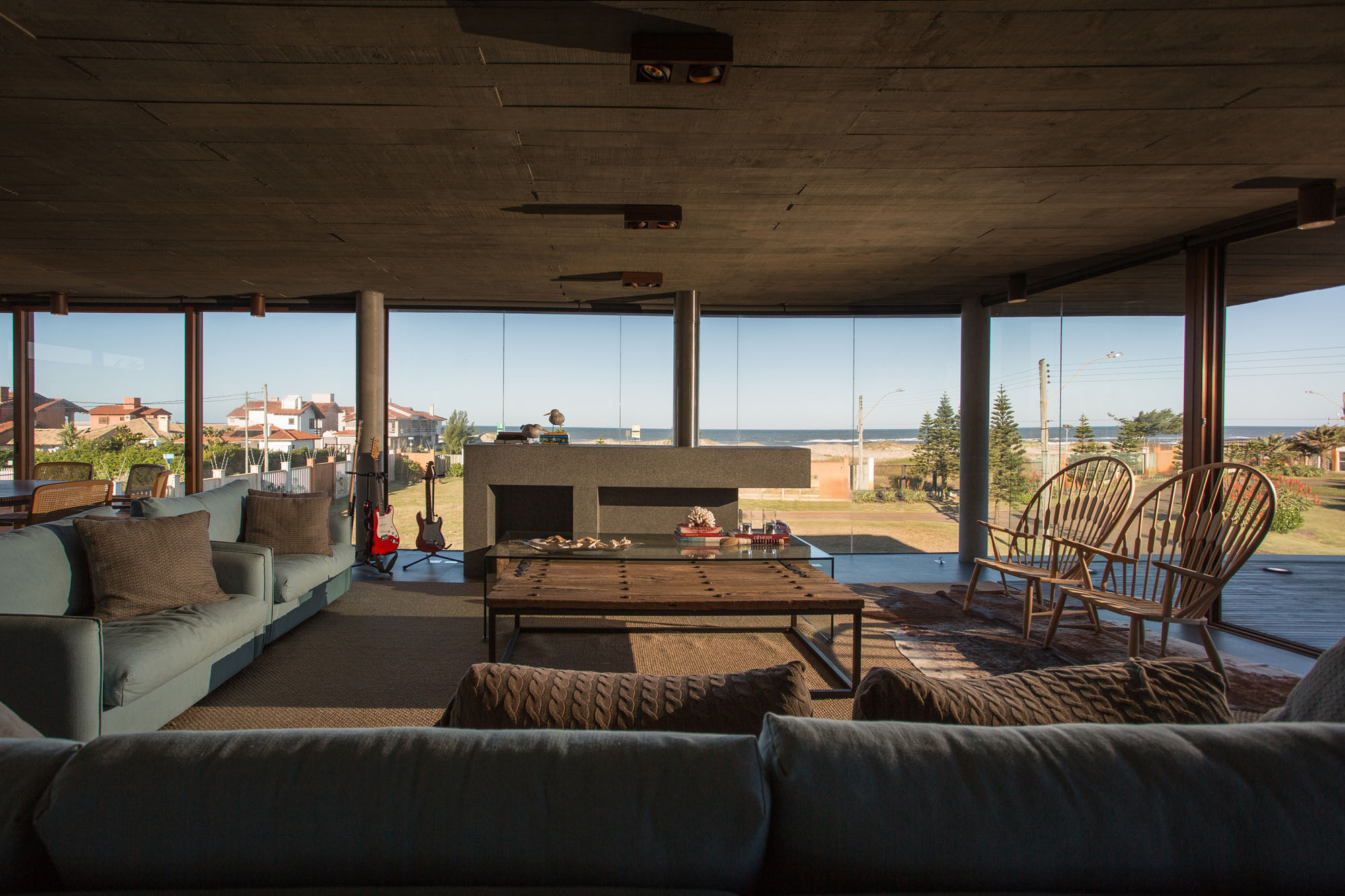 Located in Southern Brazil, La Plage is a contemporary home that was sketched out by Stemmer Rodrigues and features 4,680 square feet of living space. Built near the sea, the house boasts exposed concrete walls as well as a trio of glazed faces. As far as thermal comfort is concerned, a fireplace made out of a dark granite monolith provides much needed warmth during the cold season.