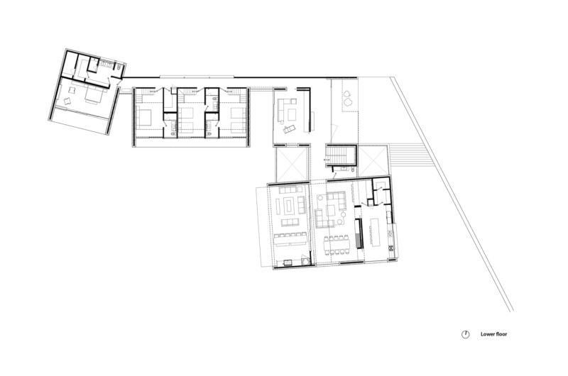 The homes boast a tight connection to the outdoors and feature large windows that welcome plenty of natural light throughout the main living areas. House A was built on higher ground than House B, and all of its living areas are centered around an open yard. House B flaunts the same layout but distinguishes itself through a rectilinear floor plan, while its bedrooms are found on a single level.