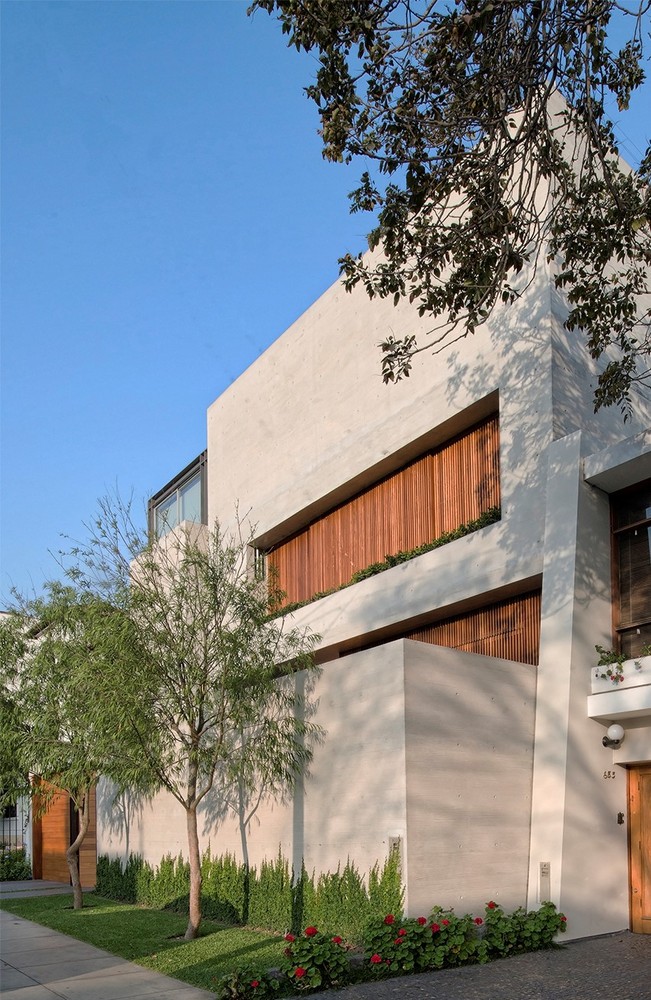 House V is located in a traditional residential urban area of Lima, with mainly single family homes and low rise buildings in a site with a northwest facade facing the afternoon sun.The project was conceived in a small plot wedge between two existing houses as a four story vertical building with a large program for a family with three children.