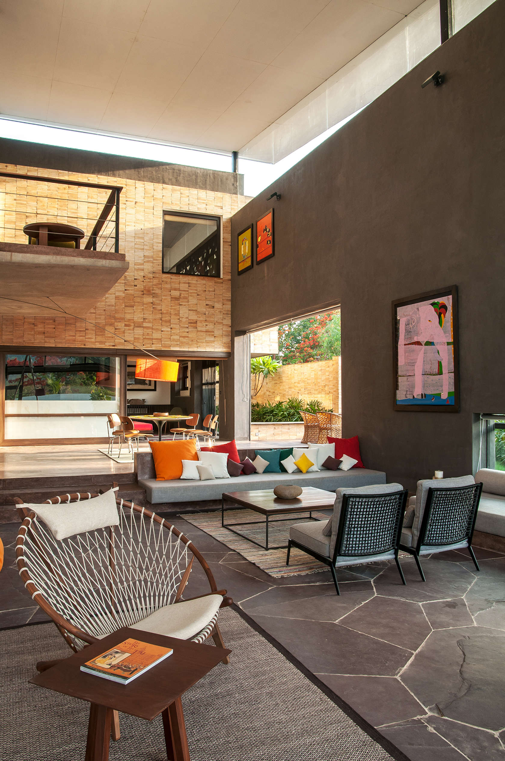 Part of a gated community, in proximity to Kalote Lake, in serene village surroundings, the house called for a contemporary rural weekend retreat feel.