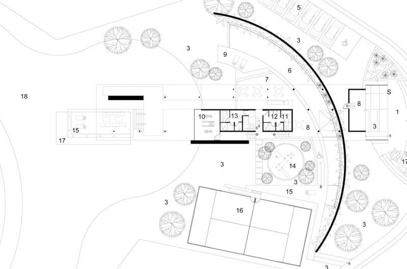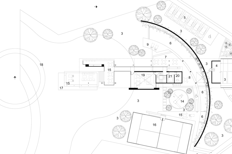 This type of club house seems more like an ascending plaza than a building that benefits from the natural landscape.
